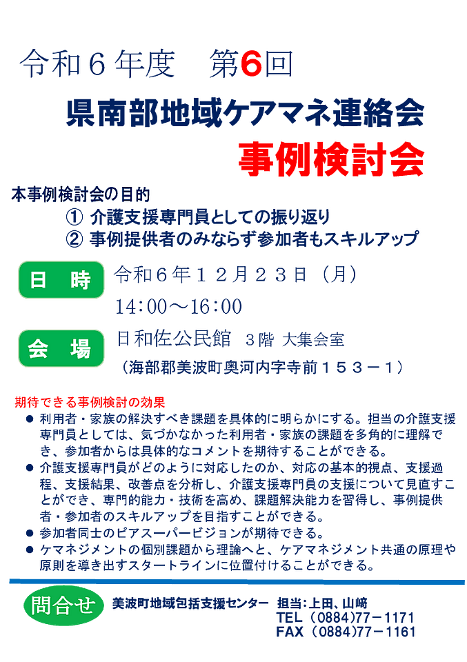 第6回徳島県南部ケアマネ連絡会事例検討会